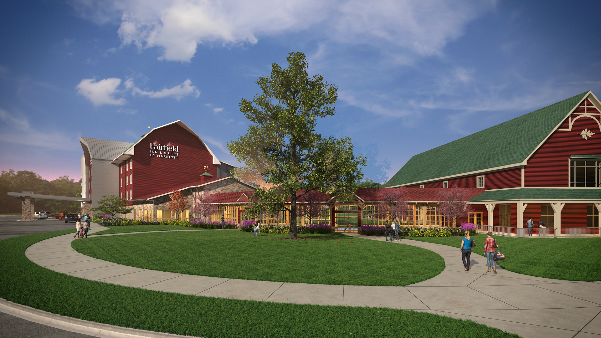 Fairfield by Marriott Fair Oaks Farms is one of the most unique hotels in the world, with its classic barn architecture and warm and art filled contemporary interiors; all directly connected to the 17,000 sq. ft. Farmhouse Restaurant, Conference Center & Pub, functionally creating a full service hotel.